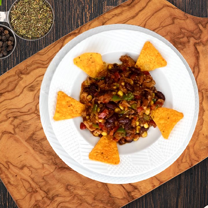Malzemeler:Bahar Hindi Tandır 240 GramSarımsak 3 DişSoğan 1 AdetKırmızı Biber 1 AdetYeşil Biber 1 AdetDomates 1 AdetMeksika Fasülyesi 3 Yemek KaşığıHaşlanmış Mısır 3 Yemek KaşığıMaydanoz 1 TutamBaharatlı Cips 5 Adet