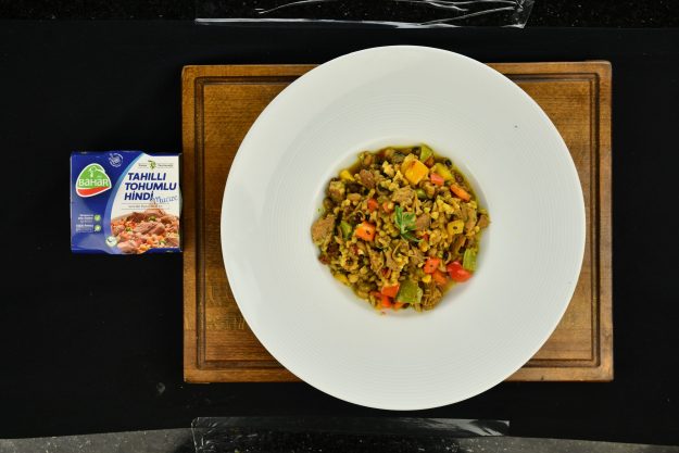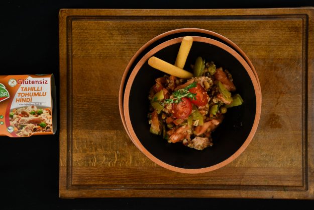 Malzemeler: Bahar Glutensiz Tahıllı Tohumlu Hindi 185 g Domates (orta boy soyulmuş) 1 Adet Salatalık Turşusu 1 Adet Maydonoz Limon Karabiber Zeytinyağ